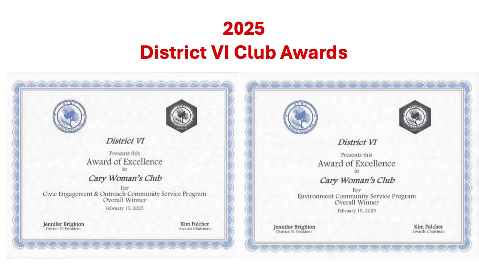 - Feb 2025 – District VI Club Awards