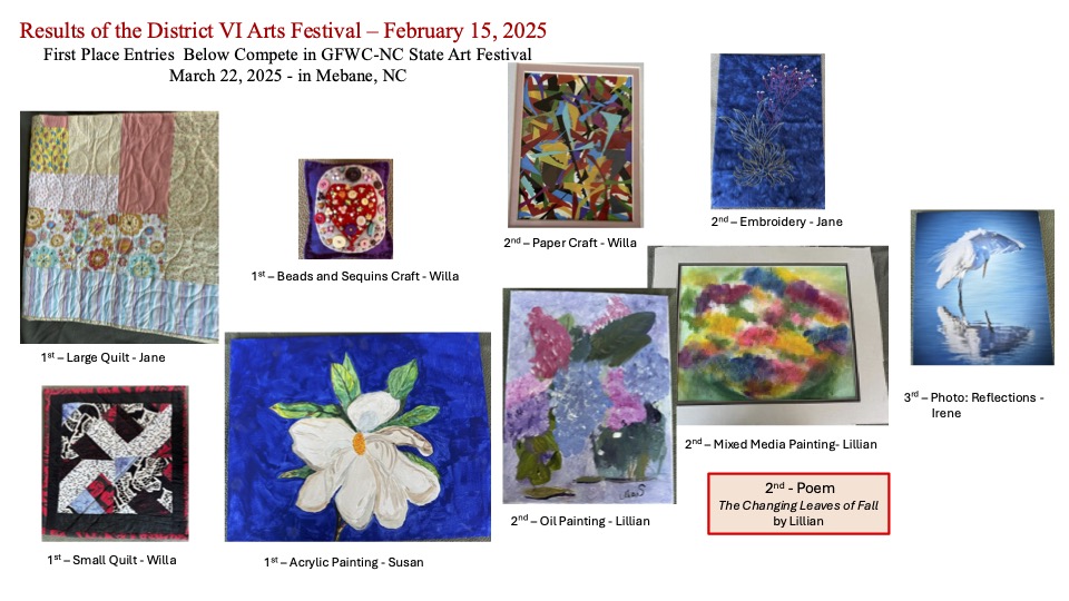 - Feb 2024 – District VI Arts and Crafts Awards